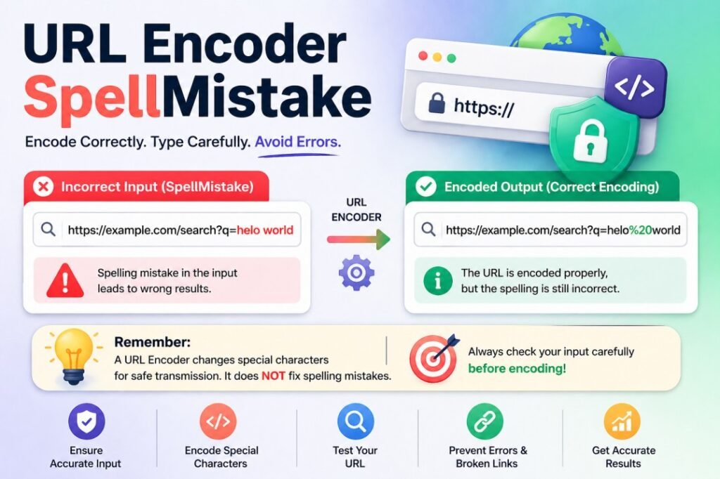 URL Encoder SpellMistake is not a real technical term, but it represents a common misunderstanding about how URL encoding works. Encoding ensures that characters are transmitted correctly, but it does not fix spelling errors or improve the meaning of the text.